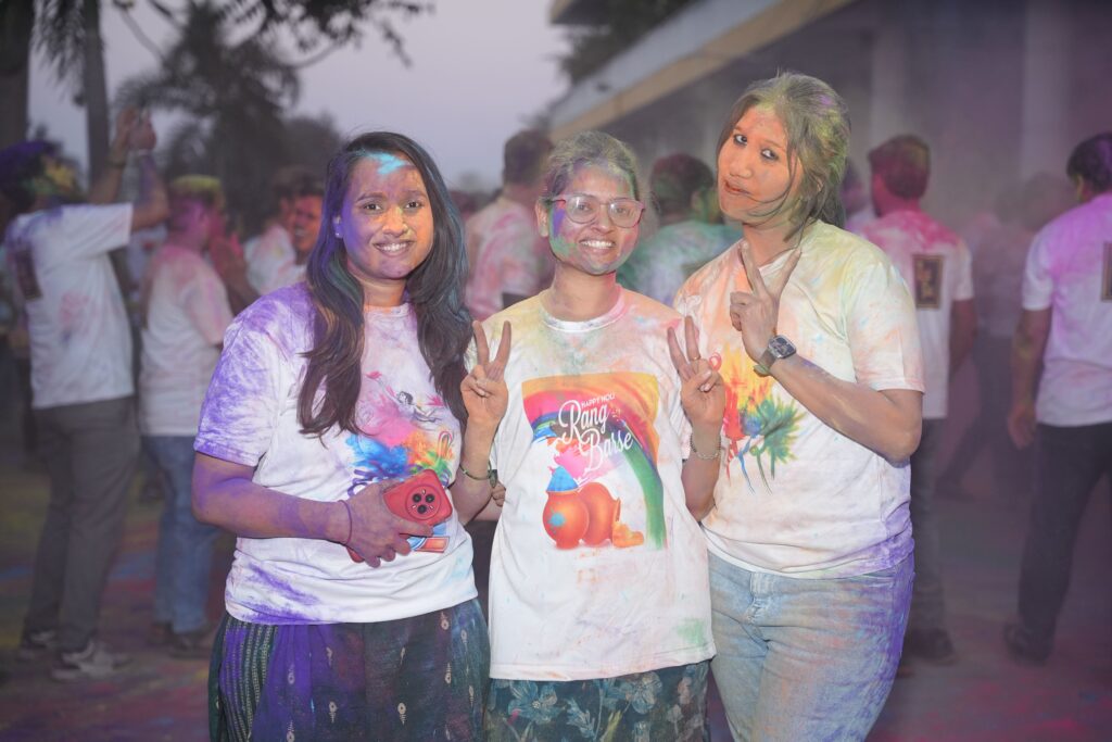 A lively DJ set the mood for the celebration, playing popular Holi songs that brought everyone to the dance floor. Employees danced, laughed, and enjoyed the vibrant atmosphere, truly embracing the spirit of the festival.